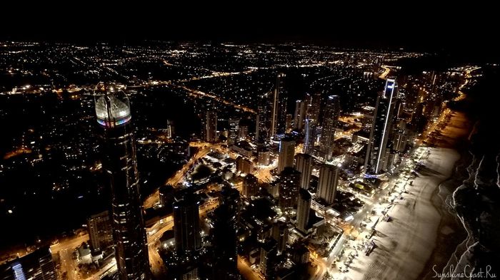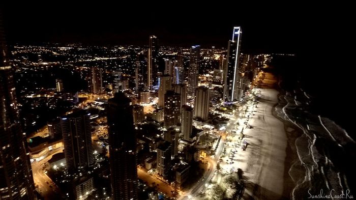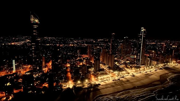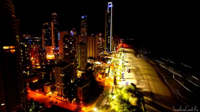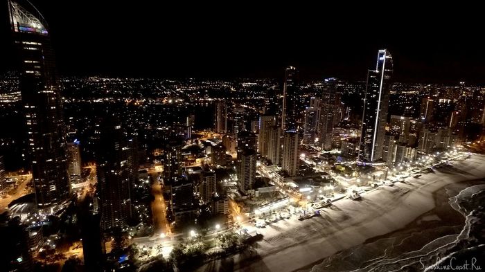 Примерно год назад я делал эти снимки с дрона над ночным Голд Коастом. С башен было очень много помех - дрон постоянно терял сигнал, не слушался команд и в итоге пропал окончательно. К счастью, примерно через 15 минут после потери связи, дрон благополучно вернулся в точку взлета в автоматическом режиме и привез эти фото.
