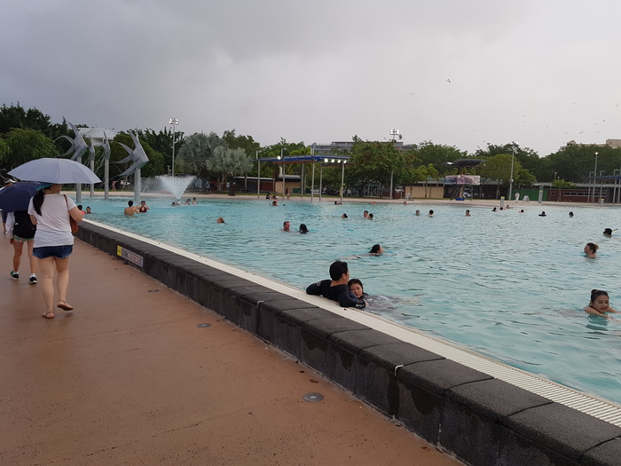 Так как купаться нельзя, в городе есть бесплатный общественный бассеин и множество водных детских площадок: