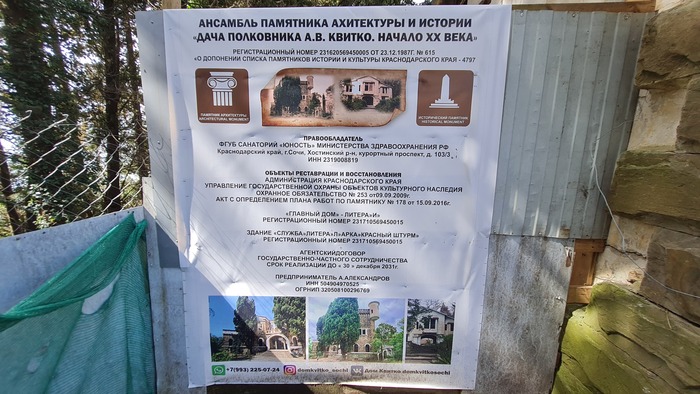 Дача Квитко, Хостинский район, весьма интересное и очень изуродованное здание. Многоуровневый миниатюрный замок, с множеством ходов и комнат.