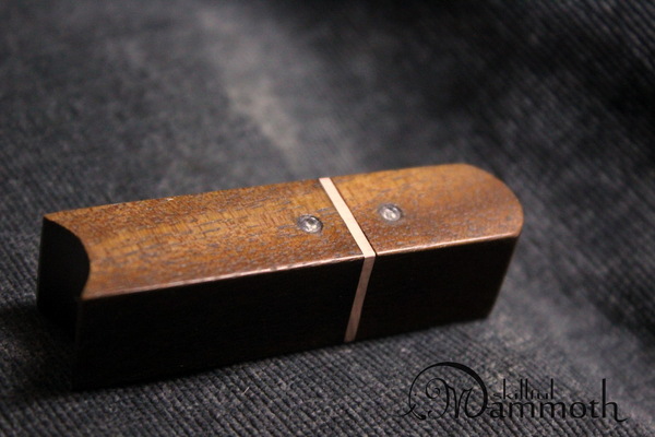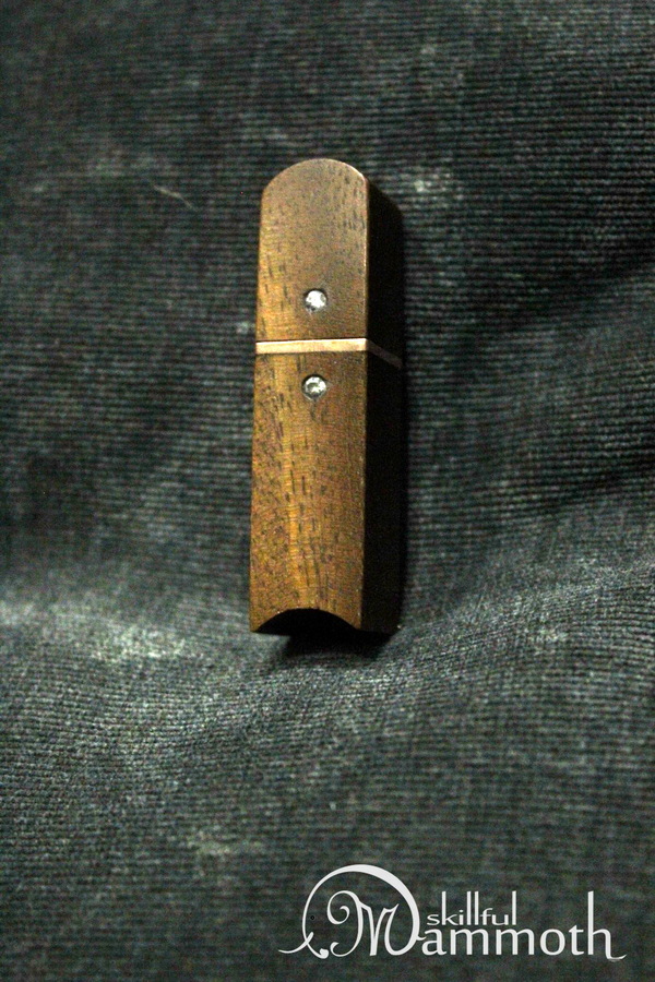Кратенько ТТХ: мундштук сделан из медной трубки, гильзы от Мосинки, образца 42 года и кусочка Эбони (по-моему). Подставка из поршня от хрензнаеткакого движка и кусочка можжевельника (точно). Пропитано смесью эфирных масел чайного дерева и лимона (загубник) и можжевела (подставка) и полировано.