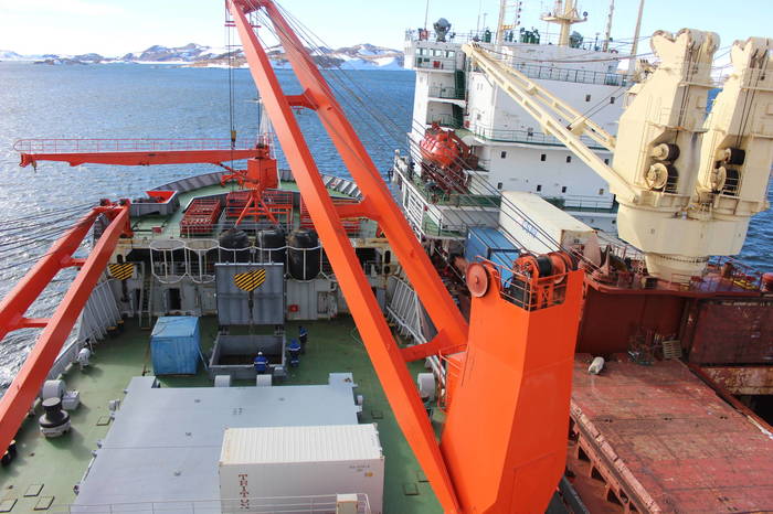 С Прогресса пароход ушёл на Мирный, потом к оазису Бангера, забрать полярников, а потом… вернулся на Прогресс. Точнее, в бухту Тала, к индийской станции Бхарати, выручать сухогруз «Папан Маманин» «Иван Папанин». Этот пароход, изрядно утомлённый рейсами по Северному морскому пути, индусы обычно фрахтуют для обслуживания своих станций. И вот так случилось, что он чем-то расковырял себе пузико, и скучал у Бхарати «с дырочкой в правом боку», принимая около ста тонн воды ежесуточно.