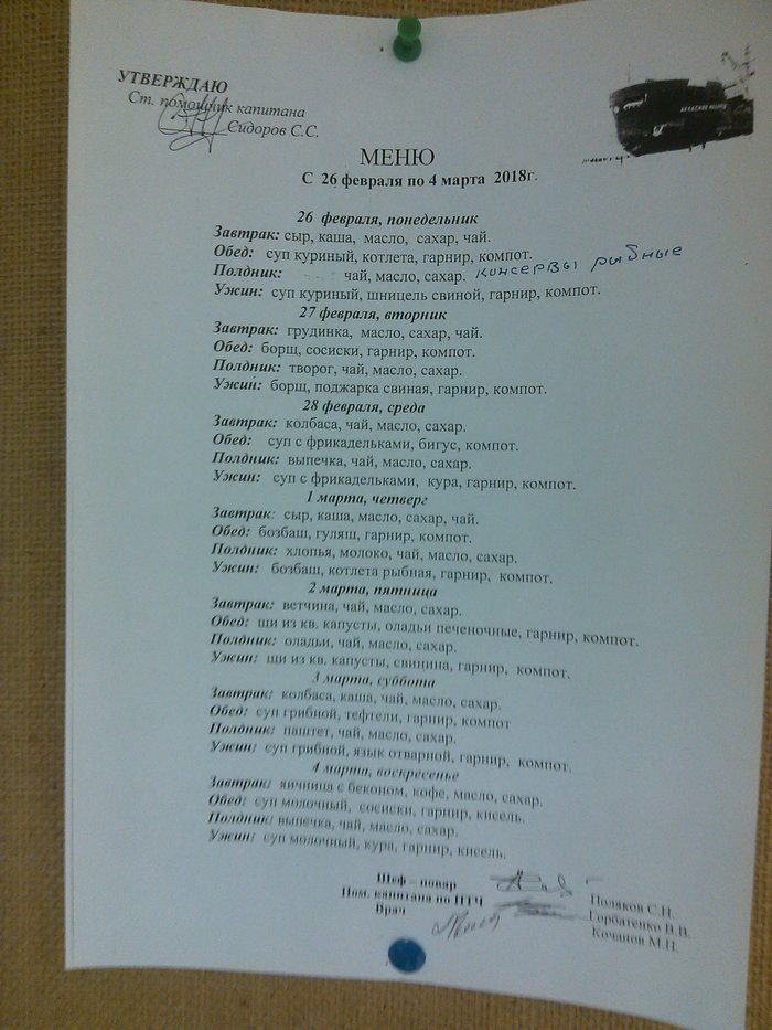 Кормят на пароходе, на мой гешмак, очень даже неплохо — морячки покушать любят, и любят покушать хорошо — однако рейс затянулся, и уже чувствуется, что пайку начали урезать. А вот на сливочном масле явно съэкономили — маргарин маргарином, но это, пожалуй, единственная претензия.