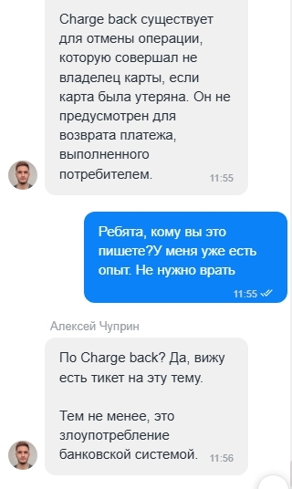 2) Если клиент решил вернуть деньги через банк - называем его "злоупотребляющим банковской системой".