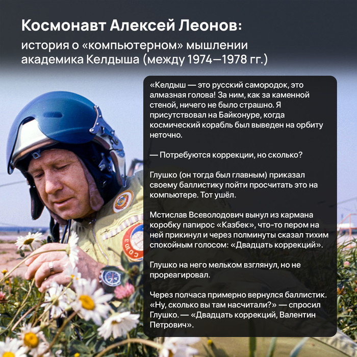 Речь идет о Мстиславе Всеволодовиче Келдыше - гениальном советском математике и человеке, который оказался в свое время в своем месте. Именно при нем, Академия Наук прошла реформирование и превратилась в настоящий храм науки. В период с 1961 по 1975 гг. он был Президентом Академии Наук СССР. Кстати, благодаря своей настойчивости Мстислав Всеволодович сумел отбить у оборонщиков ракету-носитель "Протон", которую они так сильно хотели снять с производства и которая летает по сей день. Как вы поняли, он был и талантливым организатором и мог руководить коллективом любого масштаба и справлялся с любыми сложностями. Сумел он отстоять у Партии и такие науки как генетика и кибернетика, которые были не в почему в некоторые периоды советской власти. Основы квантовой электроники, на минуточку, были заложены как раз-таки при академике Келдыше.