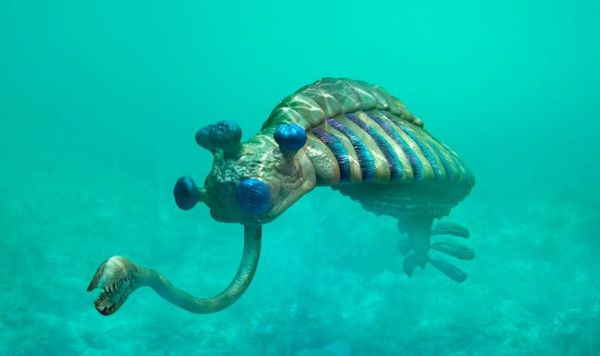 Причудливые животные кембрия: семиглазая опабиния с хоботком, заканчивающимся клещней; галлюциногения с множеством гибких ножек и шипами на спине; хордовое пикайя с парой антенн-щупалец на голове; маррелла с мощным роговым щитом с четырьмя отростками; айшеайа - онихофор с телескопическими ножками.