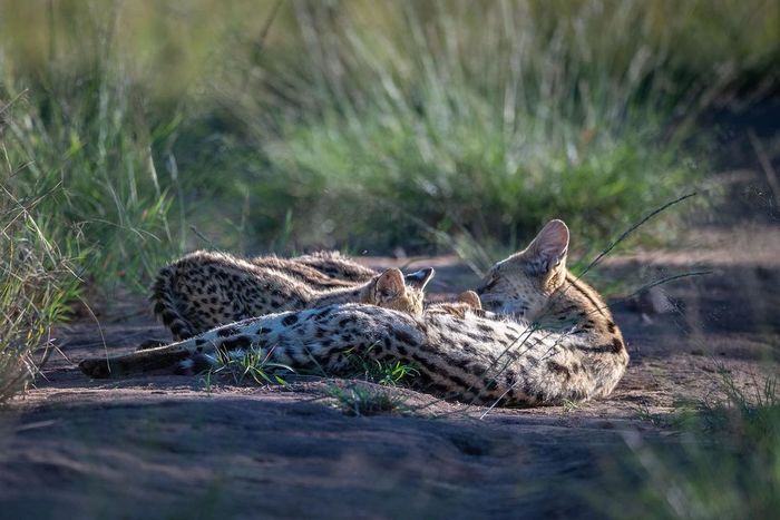 Сервал — это стройная, длинноногая средних размеров дикая кошка, обитающая в саванне Мара. Сервал поймал маленького зайца, а шакалы пытались украсть его добычу, но были предупреждены, что им лучше держаться подальше.