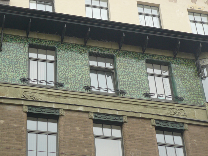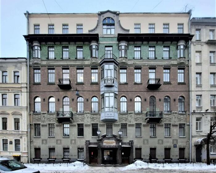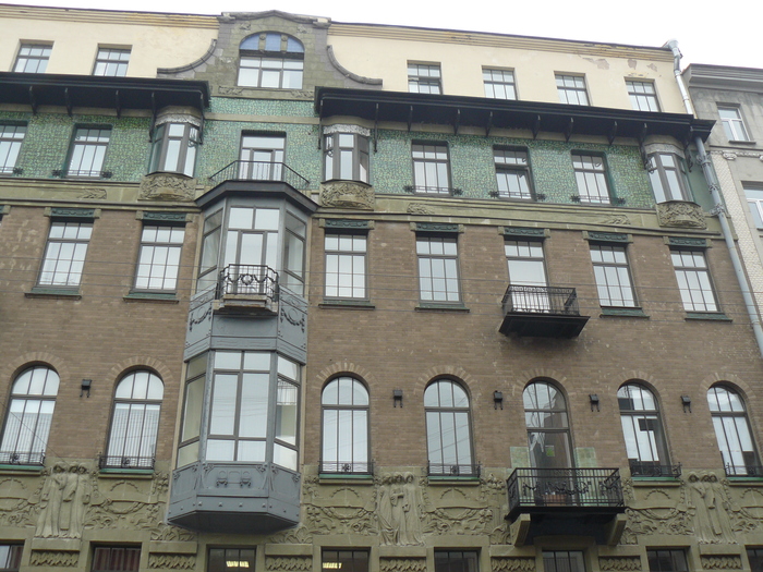 Жило-было керамическое панно Рериха на фасаде дома Страхового общества Россия., но на нем не хватало несколько изразцов. Точнее сказать, несколько изразцов на нем сохранилось, а остальные унесло течением времени:
