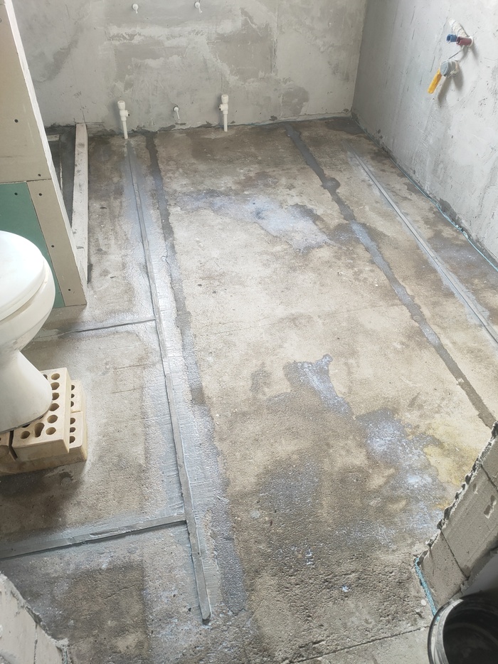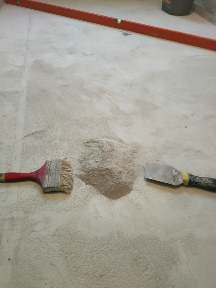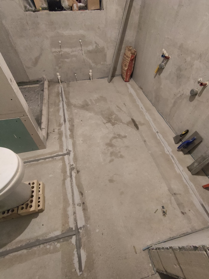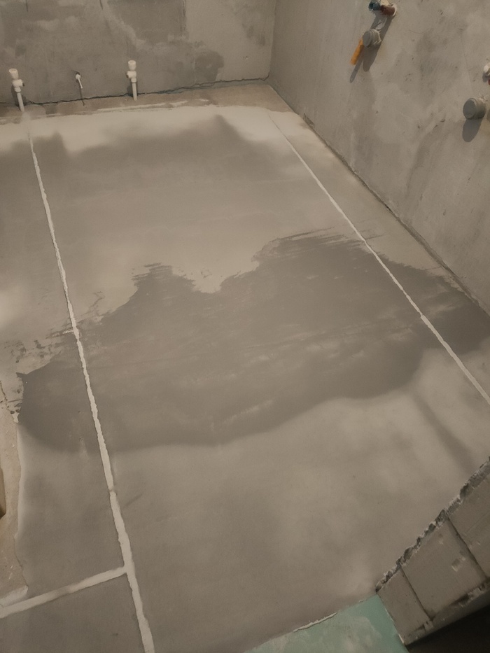 Доброго времени суток друзья.Прошлый пост я закончил заливкой поддона и стяжкой в уровень.После того как по поверхности можно ходить приступаю к подчистке. (всякие наплывы,капли)
