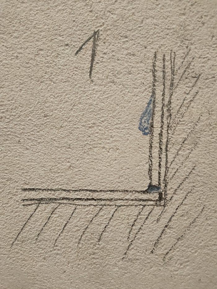 Наношу тщательно,забивая все раковины,без потёков и пропусков.В два слоя наношу только в нише, особенно обращаю внимание на внутренние углы т.к эти места самые ответственные,а так же заднюю стенку(в нише)из гипсокартона.