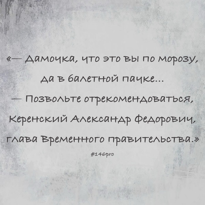 …Не было и половины девятого, когда Керенский через боковую дверь («библиотечный подъезд», известный только посвященным) проник в Таврический дворец. В здании царила истерическая атмосфера. Коллеги Керенского, господа депутаты, пребывали в полной растерянности: столько лет они призывали бурю, а теперь, когда буря грянула, не знали, что предпринять. Один лишь Керенский всем своим видом показывал, что контролирует ситуацию и точно знает, что делать.