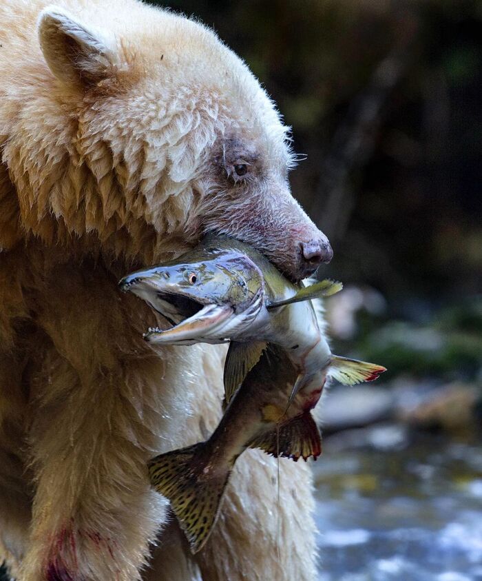 Точно неизвестно, когда эта мутация появилась, но её наличие сработало на лапу мишкам. Днём белые особи ловят рыбу на 35% чаще, чем чёрные собратья. Рыба путает светлую шерсть с бликом воды и не боится всплывать к поверхности. Это даёт медведям Кермода существенную фору — жирная рыбка, полная икры, куда питательнее кореньев и лесных ягод!