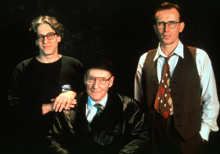 В 1991 году вышла экранизация романа Уильяма Берроуза "Голый завтрак". На фото слева направо: режиссер Дэвид Кроненберг, Уильям Берроуз, исполнитель главной роли Питер Уэллер