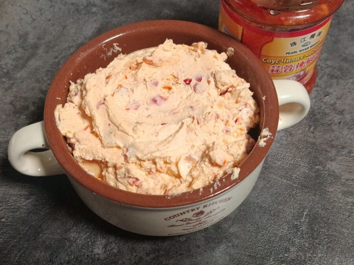 Для спреда обжарьте на оливковом масле чеснок, 2 минуты, затем добавьте хлопья чили и жальте еще 30 секунд. Теперь добавьте мед, перемешайте и сразу снимите с огня. Дайте остыть.
