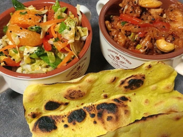 Dragon chicken - современное индокитайское блюдо. Хрустящие куриные полоски с огненным, одновременно сладким и пикантным чесночным соусом. Подадим на лепешках с азиатским салатом.