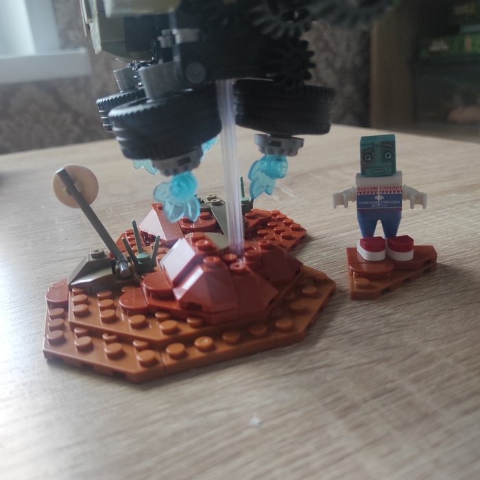 Вы можете собрать как колёсную, так и летающую версию. В наборе 521 деталь, а также фигурка одного из героев сериала — робота Робогозина.