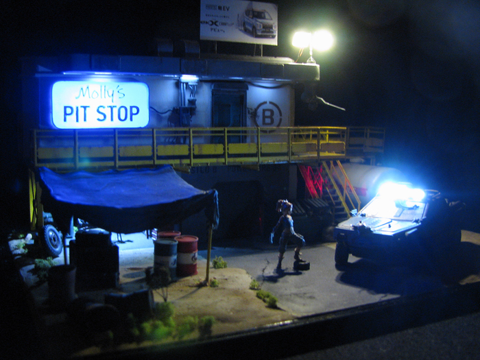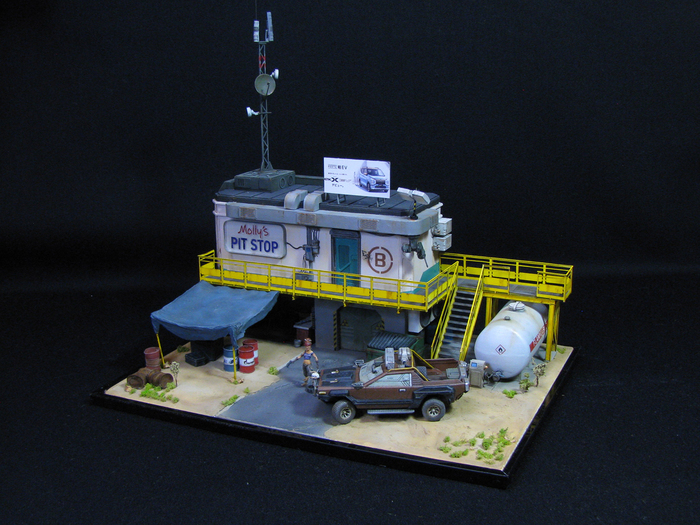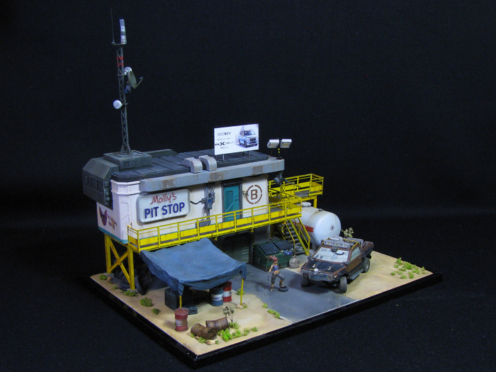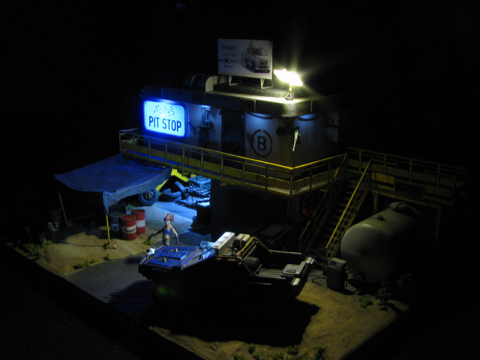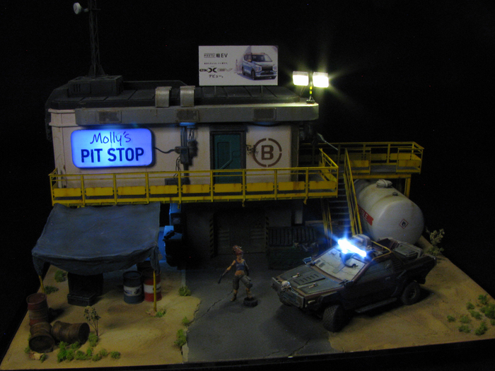 Начиналось все довольно безобидно. Под впечатлением от "киберпанка 2077" осенью прошлого года замоделил машинку по мотивам "мула". Дело обычное. Напечатал, обработал напильником. Посмотрел на него, вроде симпатичный вышел. Положил ждать покраски. А потом мне попалась на сайте с бесплатными моделями девица Молли. Такая, вполне себе киберпанковская. Думаю, надо виньетку делать. Машина и Девица, ну отличный ведь сюжет. Напечатал и ее, положил радом с мулом. Ну и лежали они себе долго и счастливо с месяц, наверное. А внутре у меня все это время червячок подзуживал : что ты, не моделист, диораму не осилишь? И еще вот в прошлом посте про 3д принтеры @Wallmark писал : "потрясающая выдержка у автора. А диорамы делаете? я бы посмотрел", Ну и грешен, взыграла гордыня, поддался, ведь выдержка-то у меня огого (нет). Дай думаю, попробую все-таки диораму запилить. Тут как назло еще и обрезки от светодиодных лент неожиданно всплыли наверх ящика с нужным барахлом... Ну и взялся 3дшку будущей диорамы разрабатывать, прикидывать, что куда поставить, в киберпанке всякое подсматривал, да на мула корпус под лампы на крышу доделал. По стилистике не совсем киберпанк вышло, немного в постапок утянуло, я его тоже люблю.