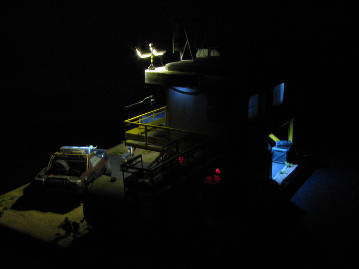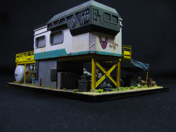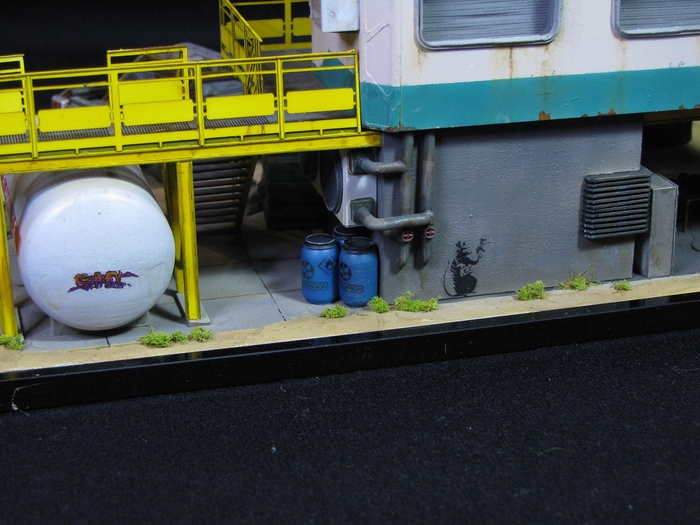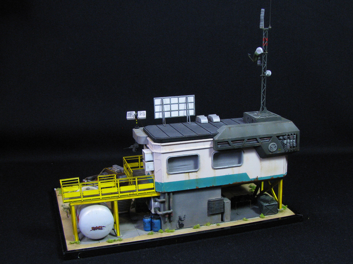 В параллель смотрел на ютубе ролики, как народ диорамы делает. И так это у них лихо и просто получается, там кисточкой махнул, там аэрографом прошелся, смывку нанес, сухой кистью прошелся и готово. Ну, думаю, ничего сложного, машинки вроде худо-бедно красил, а тут то же самое, только чуть побольше. Ага. Щас. Детальки нарезать (строение я из картона в основном делал, на такое смолы не напасешься), склеить. Ага, пока туда-сюда на столе перекладывал сломалось, порвалось, отвалилось. Вырезать заново, переклеить. Краску развести, задуть, аэрограф помыть, маски, задувка, аэрограф помыть. Ага, заехал куда не надо. Маску приклеить, краску развести , кисточкой подправить и так бесконечно.