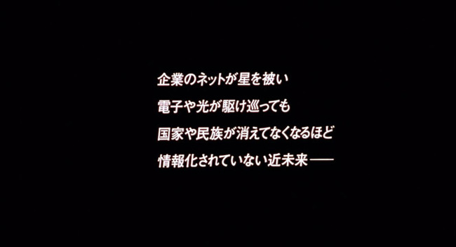 Начинается фильм с текста, взятого из оригинального комикса Масамуне Сиро. Первая строчка там такая: