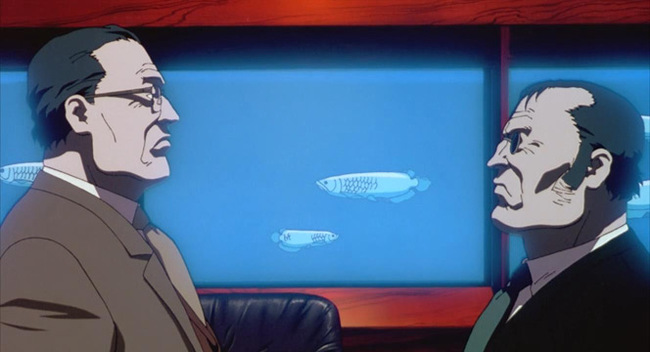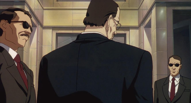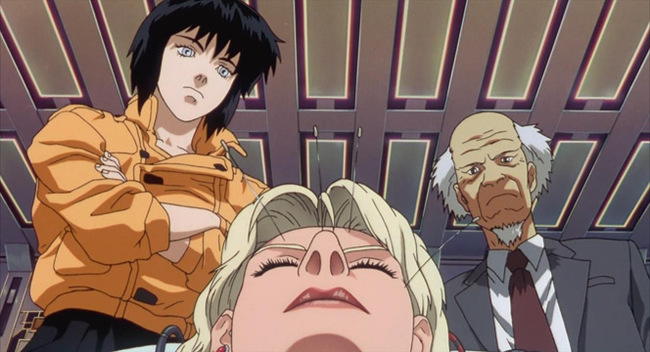 Дальше в фильме впервые появляется специальная терминология, относящаяся именно к миру произведения и только к нему. Это уже важно. Первым делом нам показывают переводчицу министра, которой взломали кибермозг. Подозревают, что это дело рук знаменитого Кукловода и что он, как обычно, захочет записать очередной жертве в мозг фальшивую память. Один из технарей говорит: