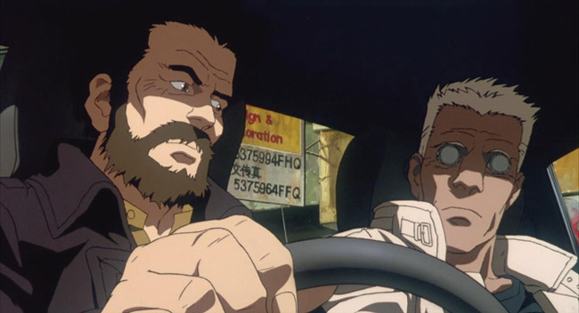 Больше в сцене погони отмечать особо нечего, разве что удивление Бато после взрыва фургона, которое в переводе "Dragon'Drop" выглядит как "Бронебойными из автомата?". Что плохого в бронебойных патронах для автомата, понять трудно. На самом-то деле в оригинале "сабмашин" - "пистолет-пулемёт", и это как бы не автомат... Ну да ладно. Дальше, когда жертву Кукловода таки ловят, Бато изрекает: