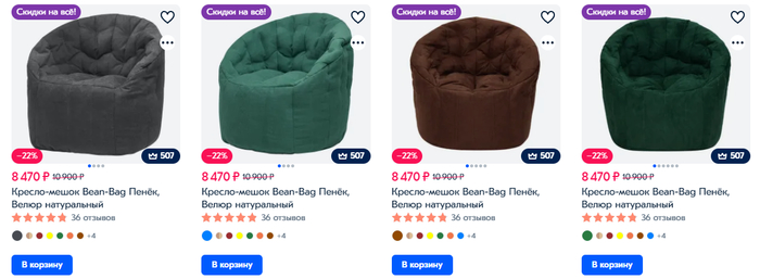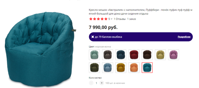 Правда душит жабка, дай-ка я поищу их где-то еще. В одном известном интернет-магазине россыпь ровно тех же кресел-мешков с идентичными фотографиями, но под другой маркой.