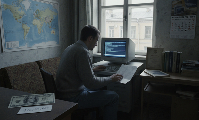 Владимир Леонидович Левин, холостой микробиолог невысокого роста с неброской внешностью, в течение трёх месяцев сидел в обшарпанной комнатке на Малой Морской улице в Санкт-Петербурге и переводил со счетов крупнейших корпораций миллионы долларов на счета подставных фирм в разных странах мира. Не один взлом, не одна строчка кода — он просто покупал готовые инструкции за сто долларов у настоящих хакеров и тупо выполнял команды, смысл которых сам до конца не понимал. Но когда всё рухнуло, именно его имя вошло в историю как первого международного киберпреступника, а сама афера стала моментом, разделившим банковскую безопасность на "до" и "после".