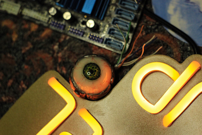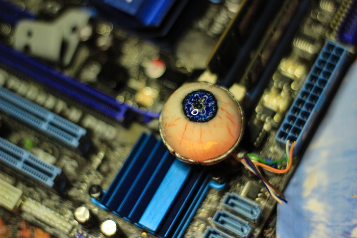 Глаза сделаны из полимерной глины и все покрашено акрилом. В дополнение были приделаны провола, шоб как глаз киборга выглядел. На внутренней стороне магнит.