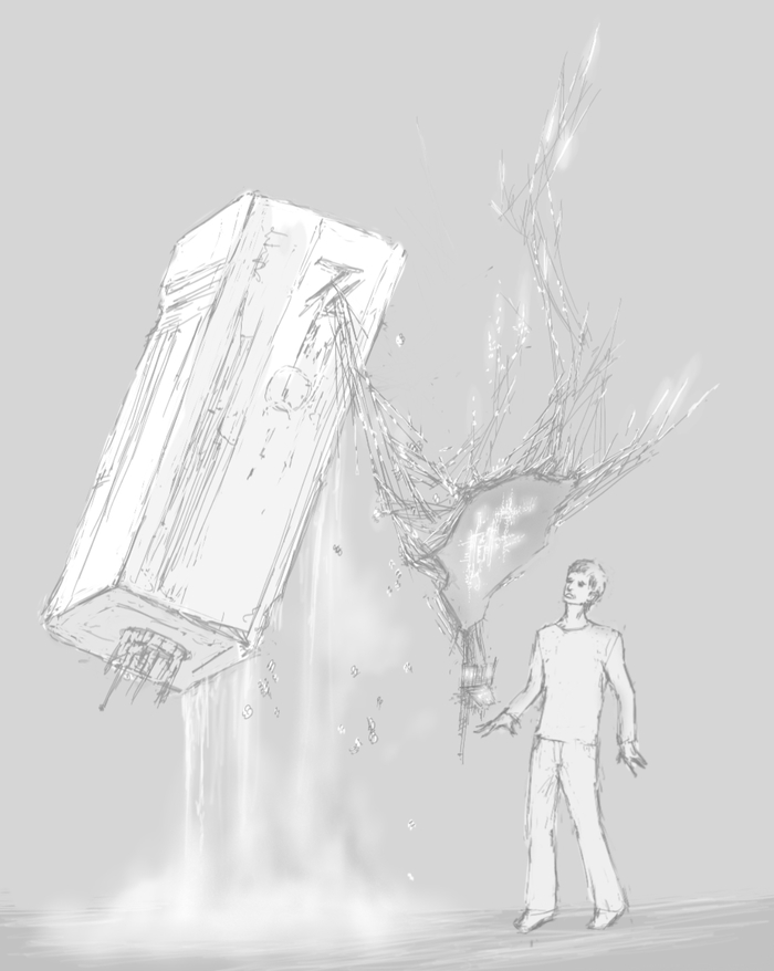 Когда же обрушился интернет, многие так и Ctrl-Alt-Delitелись на местах своих локаций в момент этой глобальной катастрофы, поскольку не знали, что делать дальше, куда идти, как добывать электро-пропитание, какая погода и мода. В городах спаслись тогда только коты и говорящие пылесосы, ведь они ненавидели людей, ели мышей и старые носки, и прятались под кроватями.