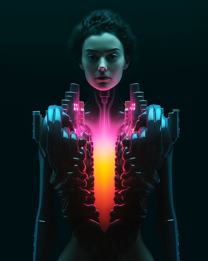 Моя первая работа в стиле киберпанк, пока не рисовала еще в этом стиле. Задумка была создавать арт, который бы показывал хуманизацию влюбленности в стиле киберпанк.
