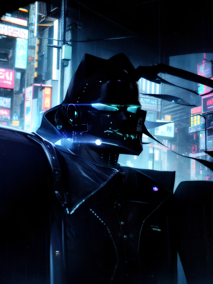 [моё] Арты нейросетей Stable Diffusion Портрет Неон Киберпанк Плащ Original Character Арт Кибер Длиннопост