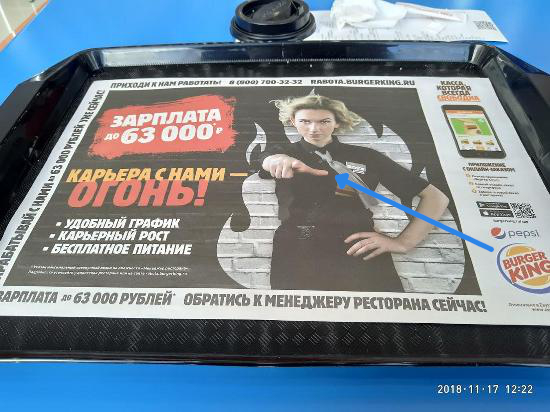 Даже цвет фастфуд-сети имел значение. Так в Бургер кинге(сине-красный логотип) на меня ткнули прямо из подноса, перенеся взгляд с логотипа Бургер кинг на указывающий жест девушки с рекламы, как бы говоря, «бургер кинг — ты», в контексте игры. Сами же «потусторонние» ассоциировали себя с Сабвей, то есть с подземкой(андерграунд).