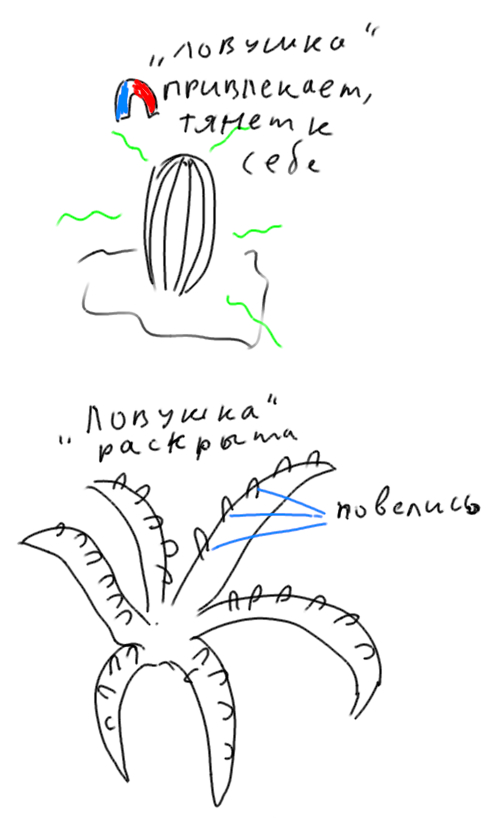 Некоторое время процесс ловли паразитов выглядел иначе. Нутро (виртуальное тело?) поместили в нечто вроде центрифуги, подвязали и «в руки» дали «палку»: я будто висел душой на тарзанке в бесконечном горизонтальном прыжке. Вокруг в темноте, как на трибунах, стояли и сидели японцы(вернее, их образы), из них и из окружающего мира то и дело, нехотя, вытягивались паразиты(?) и попадали в центр притяжения - «палку» в моих руках, «палка» начинала крутиться в руках и утилизировала паразита.