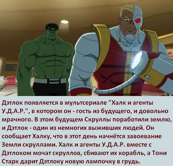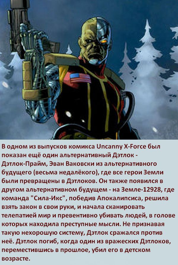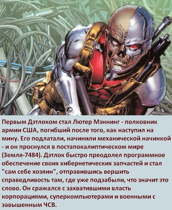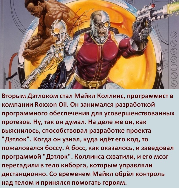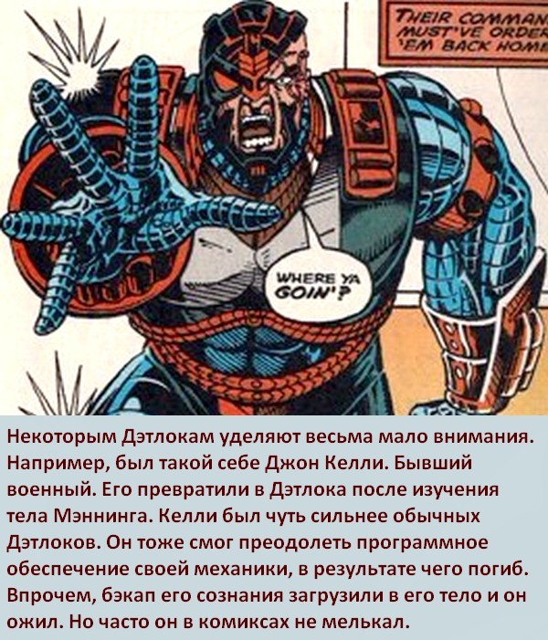 А ещё впереди комикс The New Teen Titans #2. Организация “Улей” нанимает высококлассного убийцу, Терминатора Дэфстроука (и да, это его дебют в комиксах), чтобы тот убил Юных Титанов. Дэфстроук сразу выставляет условия: способ убийства выберет сам, и деньги вперёд. Но Улей против, оплата только по факту. Поняв, что сделки не будет, Дэфстроук сваливает, уклонившись от града пуль и выбив бронированную дверь ударом ноги. Но члены Улья сообщают друг другу, что тщательно его просканировали и смогут его силы воссоздать – скоро у них будет собственный ручной Терминатор. Грант Уилсон же тиранит свою девушку, но получает по лицу от подоспевшей Старфайр (так Титаны начали звать Корианд´р) и оперативно сваливает, пообещав наказать Титанов. Старфайр, кстати, всё ещё не говорит на земном языке, но это не мешает ей пребывать в компании Титанов. И вот, Титаны всей компанией отправляются в портовый район, где как раз роботы обносят склад. Общими усилиями роботов удаётся одолеть, и Старфайр всех уничтожает, не слушая (а вернее, не понимая) вопли Робина на тему “Дура, это же улики и вещдоки”. Робин пытается физически сдержать Старфайр – и та его страстно целует. А затем на чистом английском к нему обращается. “Ой ты такой милашка! – Погоди, ты можешь разговаривать нормально?! – Поглотила знания о языке методом физического контакта. – А целоваться для этого обязательно было? – Нет, но так приятнее”. Намёки Бистбоя о том, что он немного знает французский и немецкий, Старфайр игнорирует.