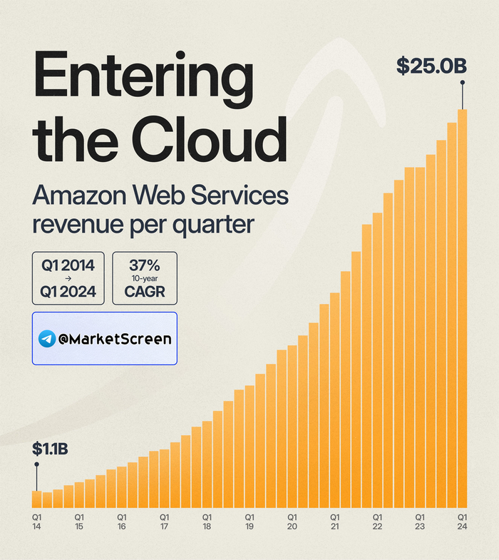 Квартальная выручка подразделения за 10 лет выросла с 1,1 млрд денег до 25. Что эквивалентно 37% среднегодовому темпу роста (CAGR).