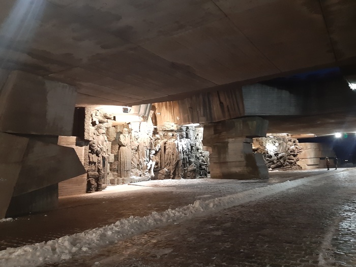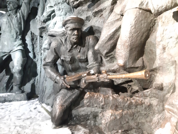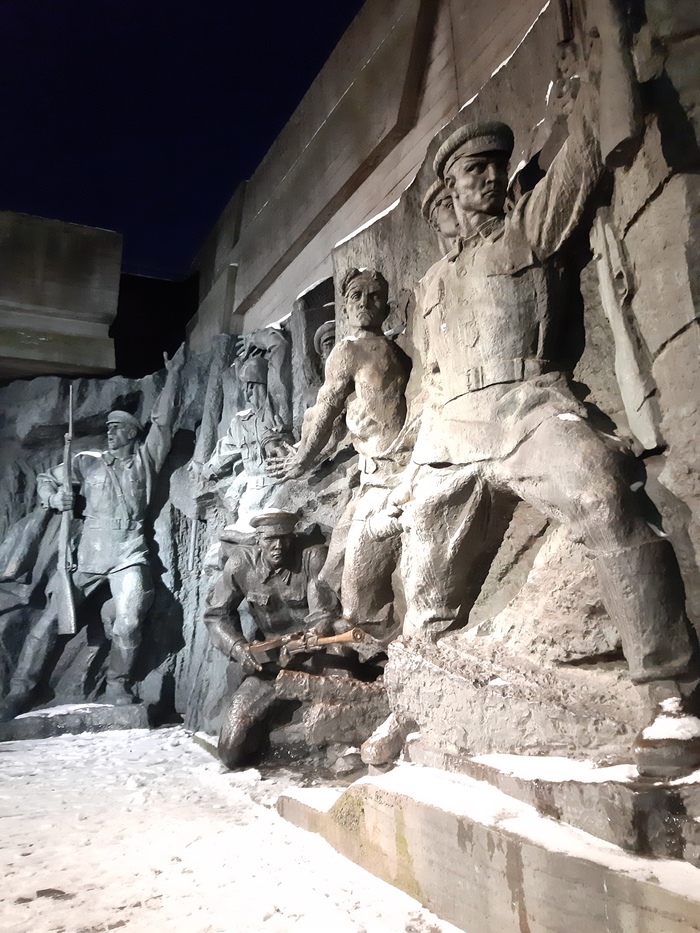 Но у меня для вас есть фотка получше, сделанная в апреле 2016 года. Тогда целый день небо было пасмурным, но вечером, пока я шёл к памятнику, облака расступились и на закате картина получилась вот такой, правильной. С гербом великой страны.