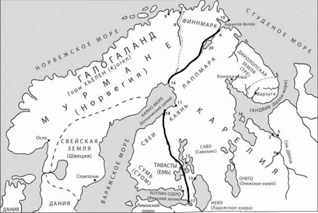 Можно считать весьма вероятным, что уже в XII веке новгородские укреплённые поселения, зимовья и торговые пункты располагались вдоль всех ключевых маршрутов северного региона. Летописные источники середины XIV века содержат упоминания таких населённых пунктов, как Орлец, Матигоры, Холмогоры в устье Северной Двины, Шенкурск на реке Ваге, Каргополь на Онеге, а также Ненокса, Уна и другие, включая несколько монастырей.