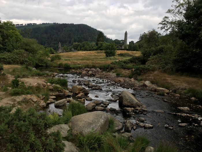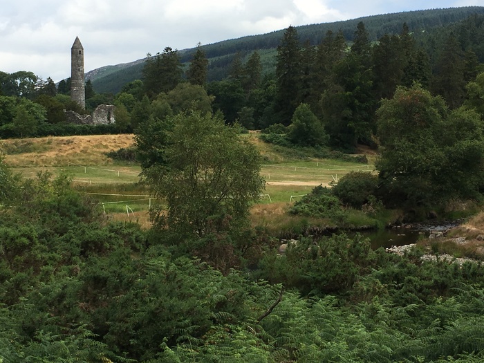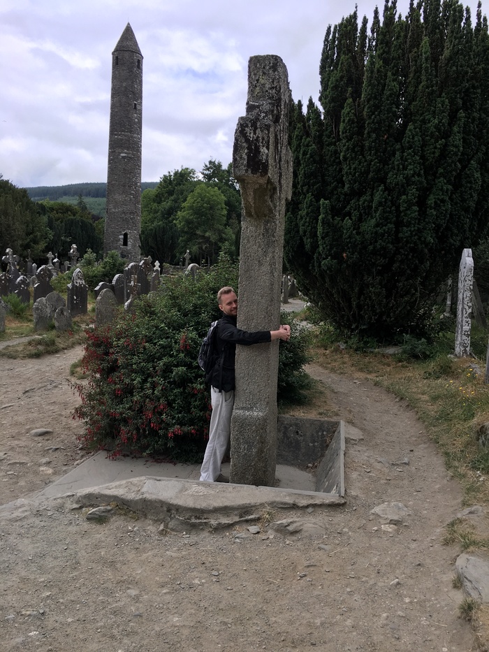 Экскурсовод дядька с хорошо поставленным голосом без акцента, воспринимается легко. Рассказывал всю дорогу обо всем связанном с Ирландией, познавательно на самом деле. Сам Глендалок - волшебное место, просто запах веков витает, чудесные озера, в инете фоток море. В лесах бегают олени, очень атмосферно. На фото ниже - крест который надо обнять так что бы сошлись руки и если они сойдутся, то у тебя длинные руки загадываешь желание.