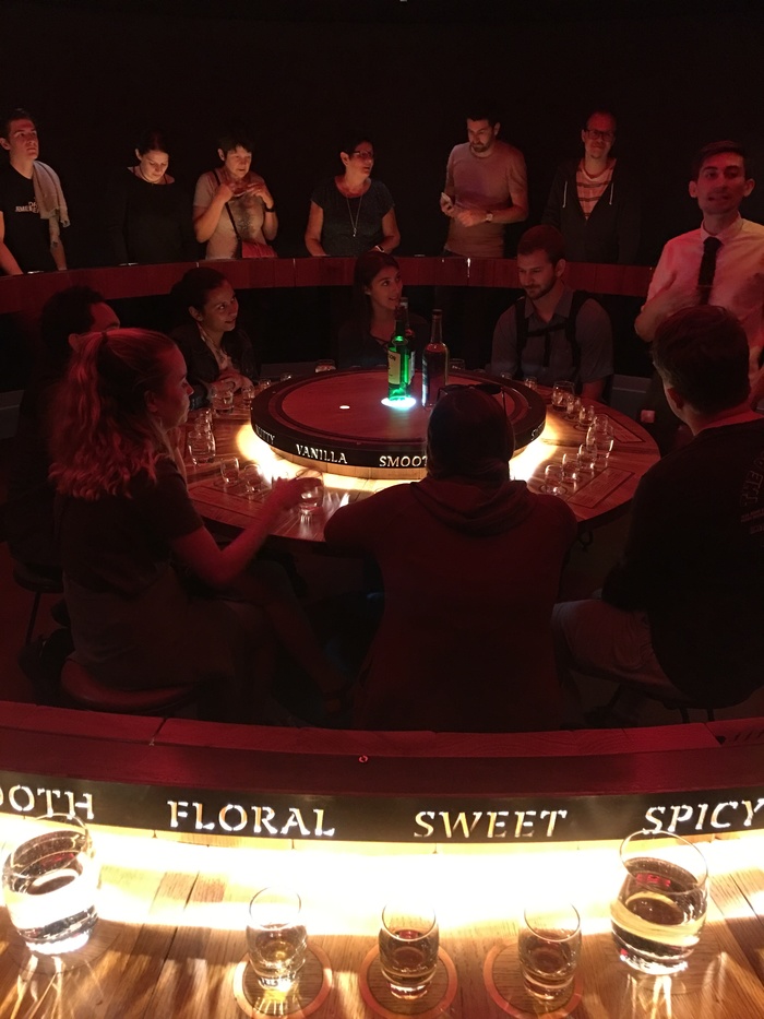 Экскурсовод парень с внешностью Девида Теннанта и милейшим английским акцентом. Впечатляет когда Доктор Кто затирает тебе про виски. На выходе дают на выбор стопарик виски или стакан его же с имбирным элем. Взяли с элем, не большой любитель пить чистоганом.