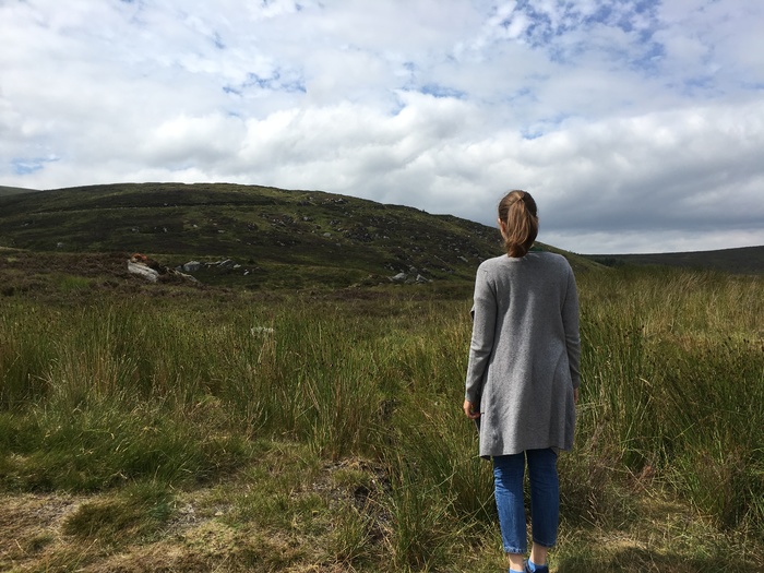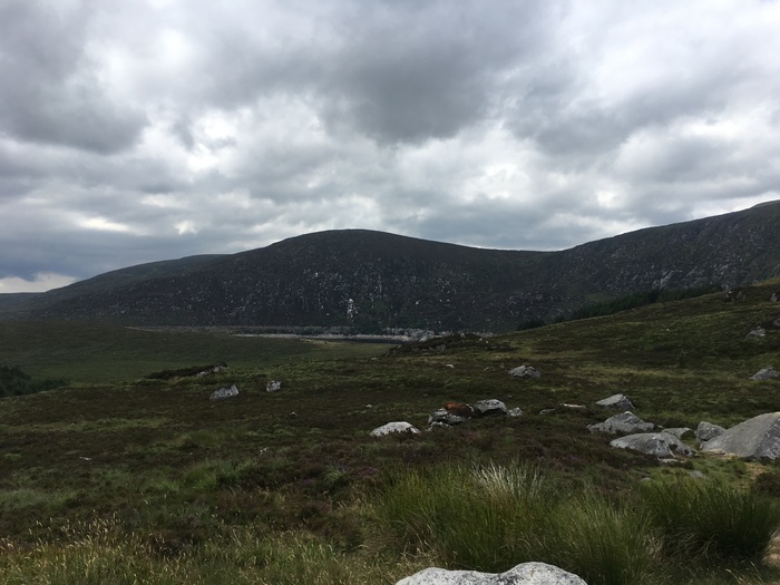 Едем в Виклоу - гора 400 с чем-то метров. Ничего особенного, но с этих горах снимали Храброе сердце с Гибсоном, даже руины от замка остались.