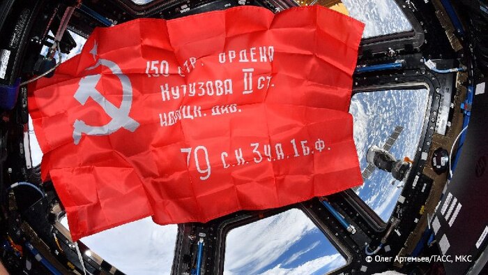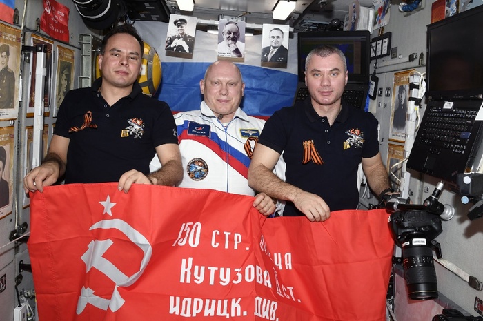 Также на МКС была доставлена копия знамени Победы.