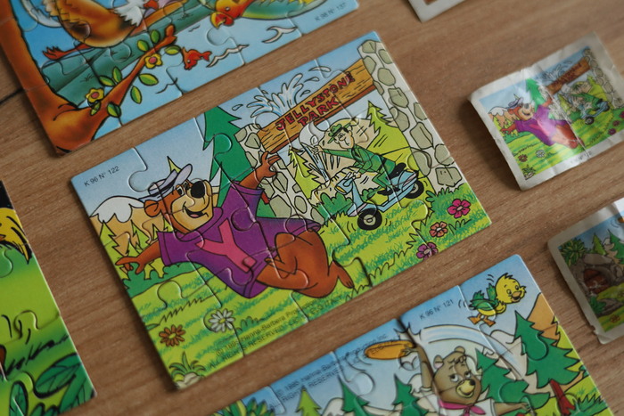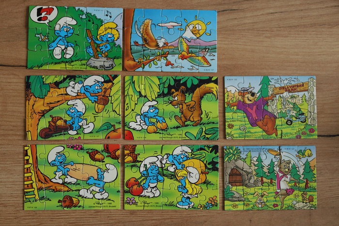 Среди сохранившихся у меня пазлов остались и те, что попадались в киндерах. Наверное, в детстве мы все немного расстраивались, когда вместо фигурки бегемотика или героя из другой популярной серии доставался обычный пазл. Но теперь, спустя годы, даже эти небольшие картинки вызывают тёплые воспоминания — ведь они тоже стали частью того самого детства, которое так приятно вспоминать.