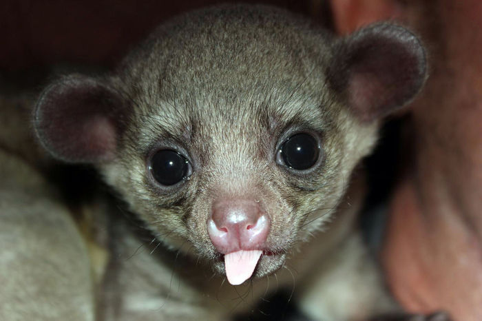 Детеныши в семье появляются редко – раз в два года, обычно – один малыш. Зато продолжительность жизни этого животного впечатляет – в среднем до 25 лет в дикой природе, а в неволе при хорошем уходе известны случаи, что кинкажу живут до сорока лет.