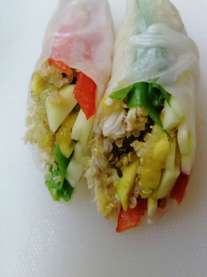 Сегодня поработал с роллами с курицей и киноа в рисовой бумаге с соусом сатай .. это не просто вкусно а офигенно вкусно !!!!!