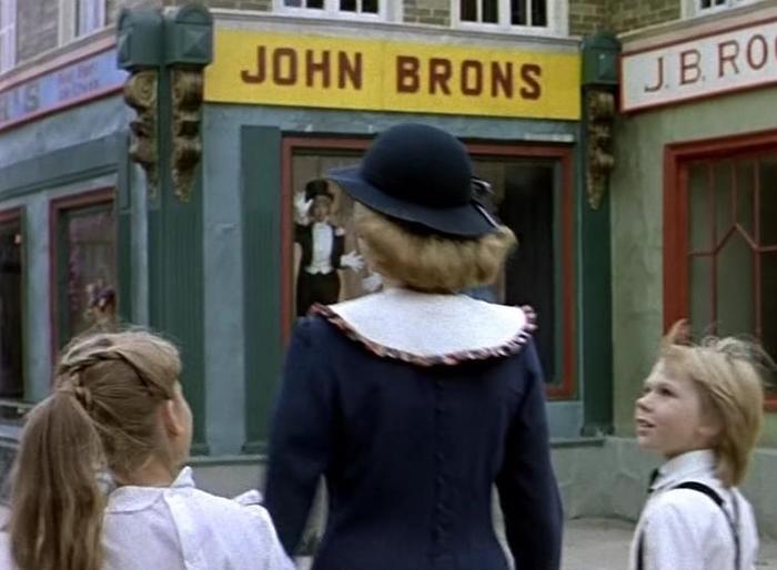 Бросился в глаза киноляп. Во второй серии сцена на карусели, молодой мистер Бэнкс держит шарик с именем John Banks. Хотя его зовут Джордж, а не Джон. И вообще с надписями особо не заморачивались. Где пишут по-русски, например, Робертсон держит плакат "Эндрю! Убирайся домой!", где вывески магазинов на английском.