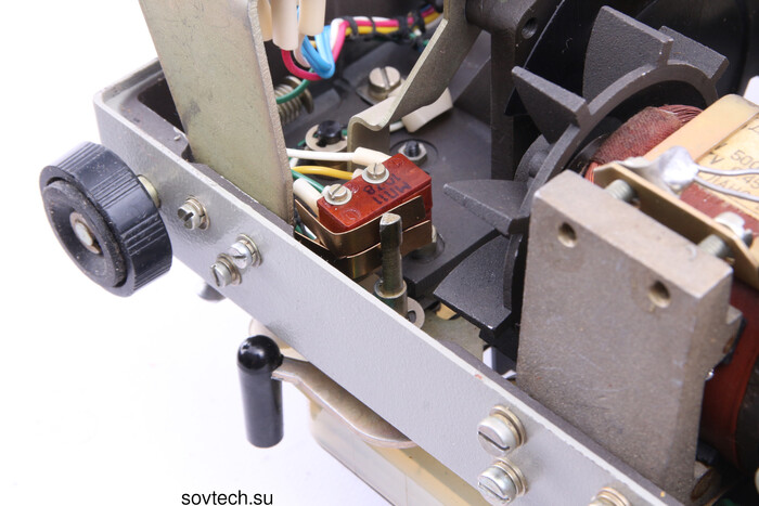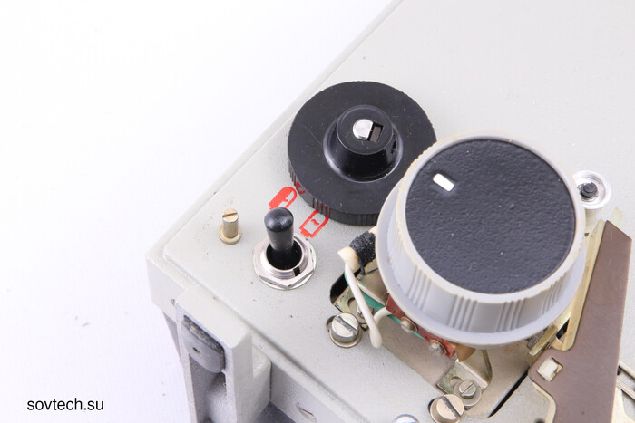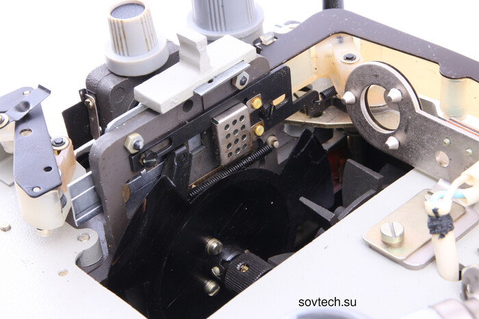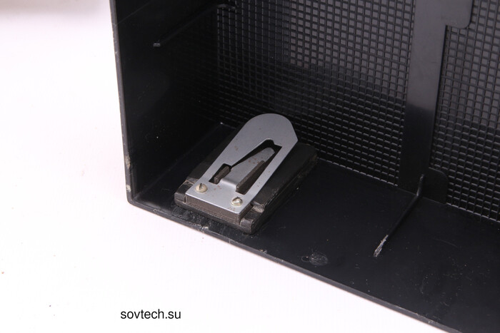В крышке спрятан резак для обрезки начала пленки - для работы автоматической заправки ленты в проектор, конец должен быть обрезан по диагонали.