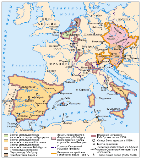 Фердинанд же, благодаря получению чешской и венгерской короны, сосредоточил под своей властью огромные просторы Центральной Европы, к которым он в 1556 году присоединил еще и земли Священной Римской империи.
