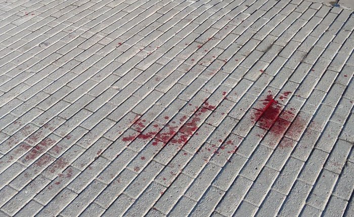 И что я вижу - на тротуаре у ресторана meet.point несколько луж крови, брызги и сгустки...