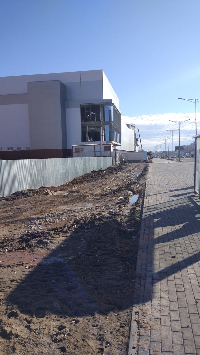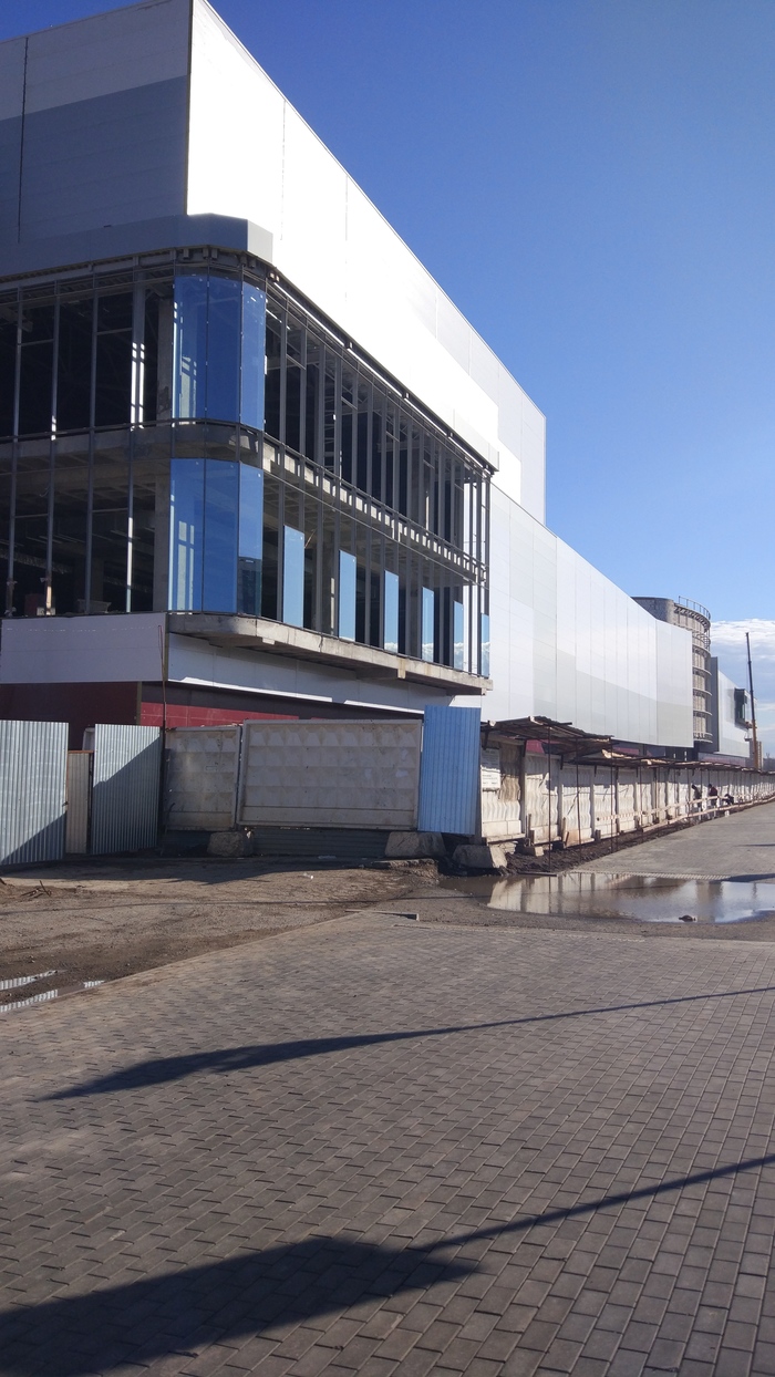 С гигиеническими целями площадка обнесена заборчиком из оцинкованного листа. За время стройки заборчик принял не самый презентабельный вид (напоминаю, в двух шагах транспортный хаб и стадион в прямой видимости). И вот пришла весна, скоро лето и по логике пришло время разгребать свалку, благоустраивать территорию (есть мнение, на месте свалки должна быть парковка ТЦ), но не далее, как вчера застал следующую картину. Работяги подтаскивают свежий лист, наваривают металлоконструкцию забора в высоту. Я в недоумении- как так, зачем!!?? И тут суровая правда обрушилась на меня всем своим стремительным домкратом: вместо того что бы разгребать свалку (а время на это еще есть), они просто ДЕЛАЮТ ЗАБОР ПОВЫШЕ!!!