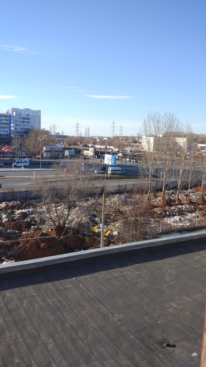 Сделаю небольшое отступление. Перед тем, как превратиться в свалку, участок использовался для хранения грунта из котлована под ТЦ. Живу напротив, и по моим прикидкам высота отвала достигала уровня 3 этажа, когда на нее забирался экскаватор, казалось, что в квартиру заглядывает Оптимус Прайм. Забавно, что грунт с площадки вывозили строго по ночам: начинали около 23:00 и заканчивали работать к 6:00 утра. Что это значит я ХЗ, то ли вывозили куда-то налево, то ли действительно такой график работы техники был специфический. Так или иначе, грунт с площадки вывезли. Тут бы мне возликовать, ан нет, на площадку стали завозить строительный мусор…