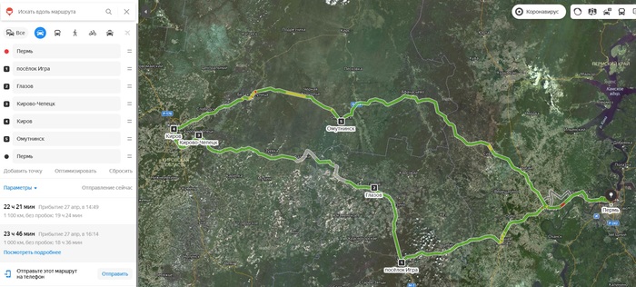 Поездка состоялась в сентябре 2019 года. До этого бывал в Кирове только на жд станции и проездом по окружной дороге. Схема маршрута, туда: через Игру, Глазов, Кирово-Чепецк, обратно через Омутнинск.